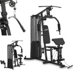 Gefertigt ist die Multigym aus massivem Stahl. Zudem erhöht die Konstruktion aus Vierkantrohren die Widerstandsfähigkeit des Geräts. Die edle Optik erhält die Trainingsstation durch die hochwertige, schwarze Lackierung.
